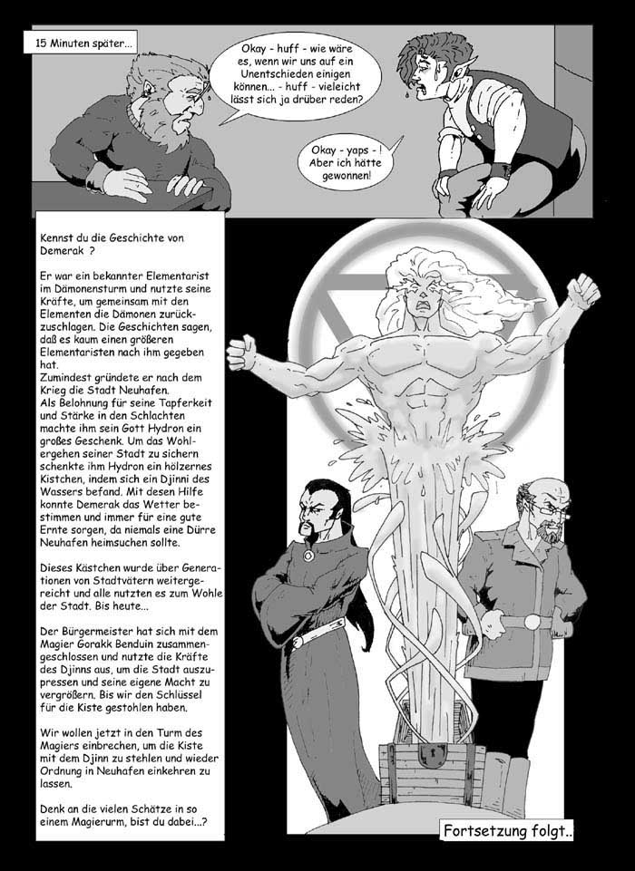 Sei es drum. Um diese Feierlichkeiten angemessen zu begehen wird sich dieses Jahr nicht nur viel an der neuen (und endgültigen) Version von Baal tun, ich werde auch ein paar Goodies aus älteren Versionen in Netz stellen. Den Anfang machen die ersten beiden Seiten des (legendären ;-) ) Baal-Comics, der damals im Envoyer veröffentlicht wurde. Nach und nach werde ich dann auch die anderen Seiten dazu packen (allerdings lässt die Qualität mit jedem Teil nach, weil ich damals etwas unter Zeitdruck geraten bin) und dann wird die Regelversion aus dem Jahr 2000 folgen.